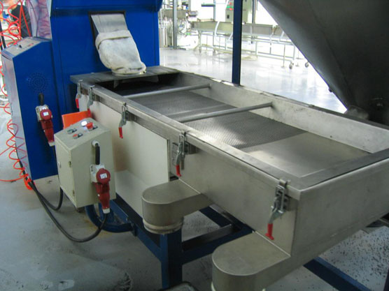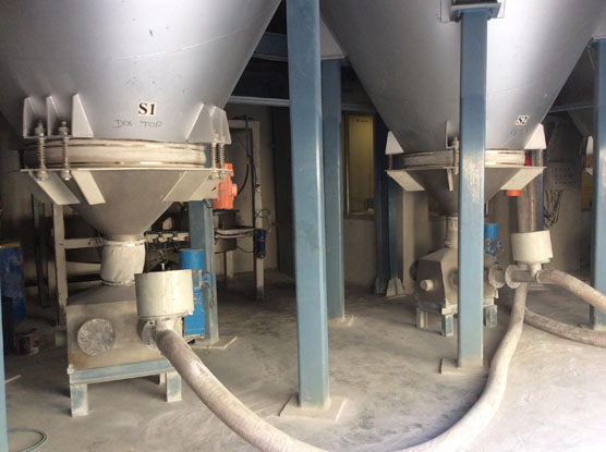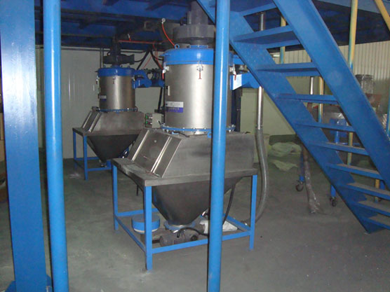 ▲排出物料從秤到預(yù)混合器,然后到失重式進(jìn)料器