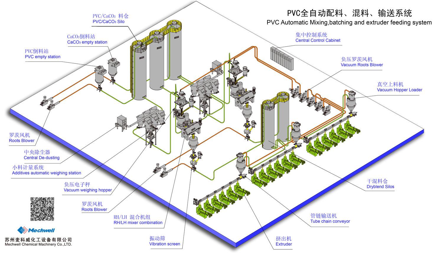 PVC配料,攪拌和擠壓輸送處理